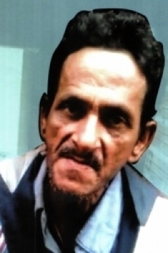 trajava blusa de frio azul e branco, calça jeans e chinelo.